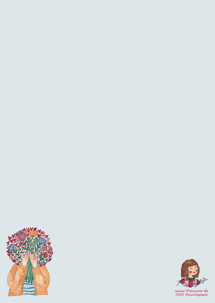 - Rückseite mit kleinem Blumenstrauß unten links und Fraususa-Logo unten rechts
